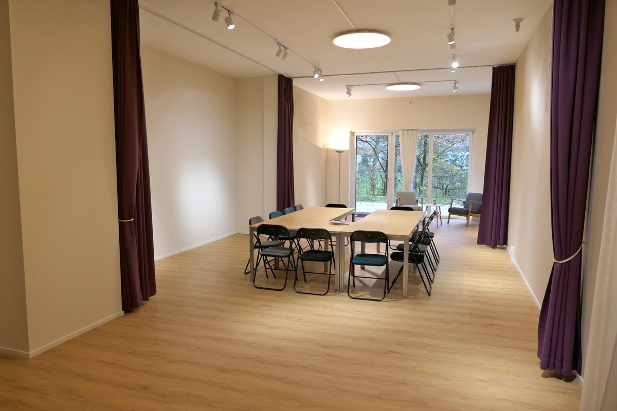 Ergänzend kann ein zusätzlicher Raum (33m2) als Empfangs- oder Apéro-Bereich (mit Verbindungstüre) dazu gebucht werden. Ein Beamer steht zur Verfügung.